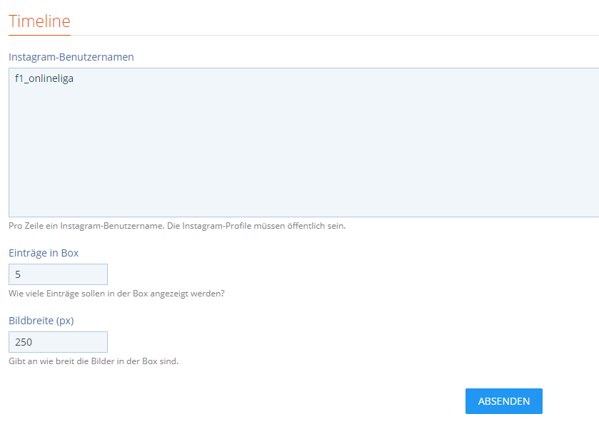 30. August 2019 um 23:42 #1 Mir wird weder die Timeline auf der Instagram Seite noch in einer Systembox angezeigt.Das Instagram-Profil steht auf öffentlich.