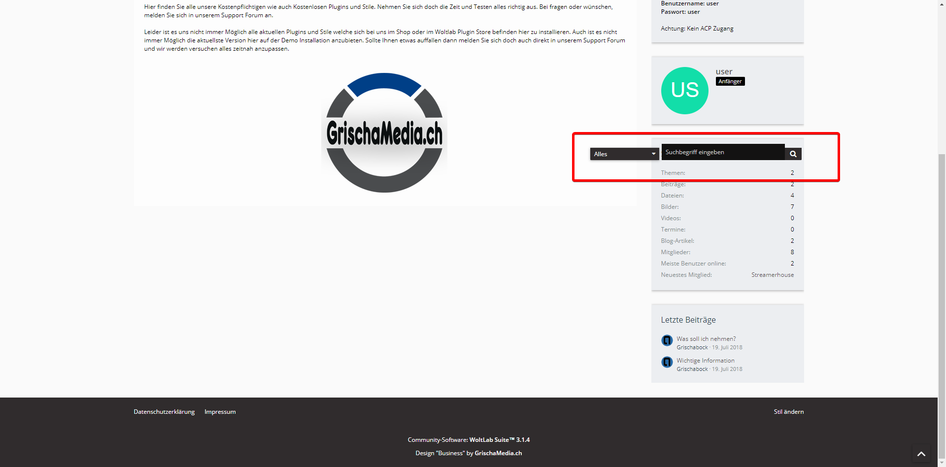 Wenn man in dem Demo Forum auf z.b. die Suchfunktion klickt und Herunterscrollt, das Fenster der Suche geht aber mit runter und bleibt nicht am Header fixiert.