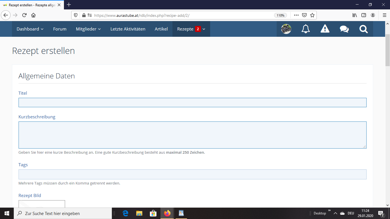 in der ersten Kategorie kann man Rezepte einstellen, da kommt dieses Bild