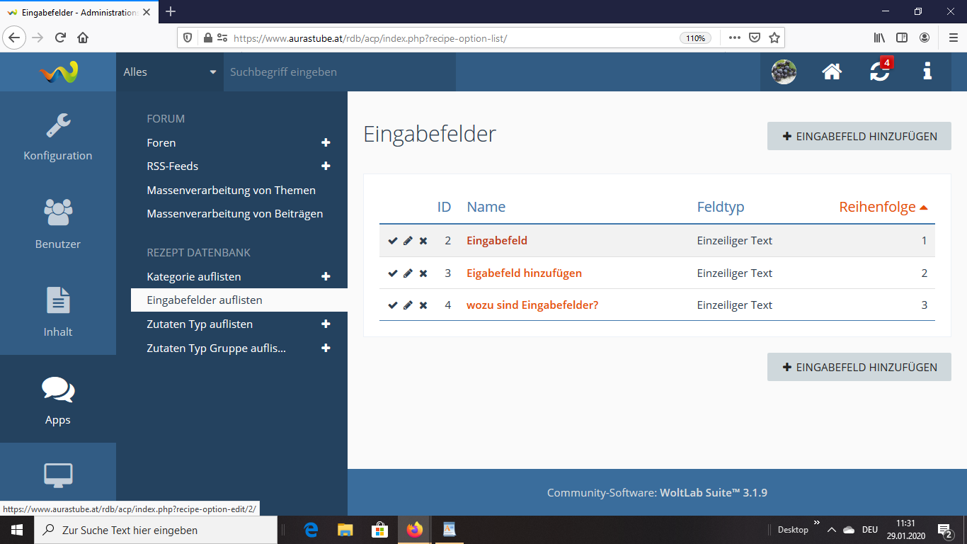 Das habe ich schon gesehen, aber das ist nicht das Problem, sondern dass man nur in einer Kategorie Rezepte einstellen kann, in der ersten, obwohl ich die anderen gleich erstellt habe. Vielleicht kannst du es dir zumindest ansehen, ob das Problem wirklich an mir liegt, du hast noch Zugang zur Administration.