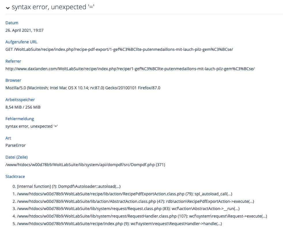 beim Versuch ein Rezept zu drucken als pdf kommt folgende Fehlermeldung: