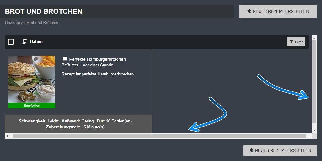 Nach zig Versuchen ein neues Rezept anzulegen und wechseln zwischen den Rezept Kategorien klappt es dann nach einigen Minuten.