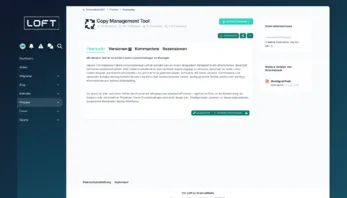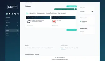 Die feste Seiten-Navigation auf der linken Seite schafft Struktur und Orientierung – ideal für Communities, Entwickler-Plattformen oder Business-Projekte. Farblich setzt LOFT auf einen hochwertigen Blau-/Türkis-Verlauf mit dezenten Schatten, klaren Linien und weichen Card-Layouts. Dadurch wirkt die Oberfläche modern, professionell und dennoch angenehm zurückhaltend.