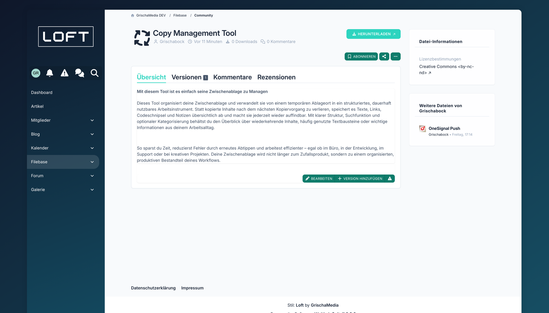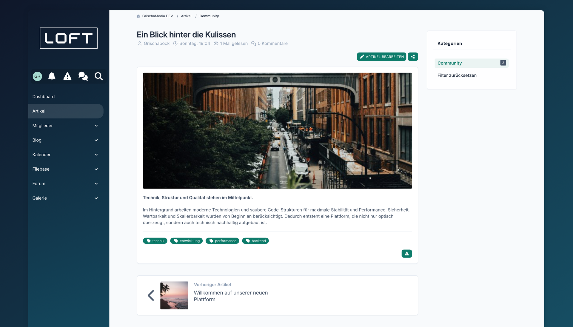 LOFT eignet sich perfekt für Agenturen, Entwickler, Communities, Tech-Projekte oder Business-Plattformen, die Wert auf ein professionelles und aufgeräumtes Design legen.